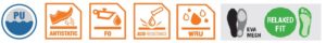 Χαρακτηριστικά: Άνετη γραμμή. Αντιστατικό. Αντοχή της σόλας στα πετρελαιοειδή και στα οξέα. Ανθεκτικό στο νερό.