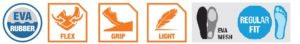 Χαρακτηριστικά: Κανονική γραμμή. Ελαφρύ. Εύκαμπτο. Αντιολισθητικό.