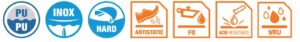Χαρακτηριστικά: Κανονική γραμμή. Προστασία διάτρησης και δακτύλων από ατσάλι. Αντιστατικό. Αντοχή της σόλας στα πετρελαιοειδή και στα οξέα. Ανθεκτικό στο νερό. Σύνθεση: Σόλα: ∆ιπλής σύνθεσης πολυουρεθάνης. Εξωτερικό: Split suede leather. 550 gr